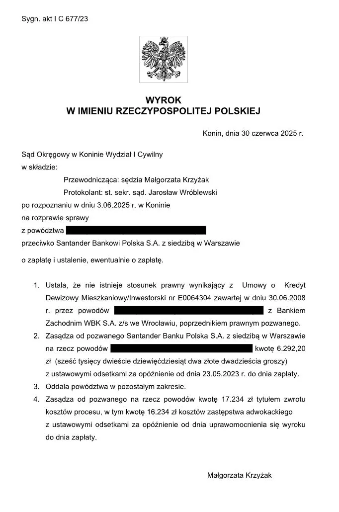 Zapraszamy do zapoznania się z osiągnięciami naszego działu prawnego w prowadzonych sprawach.